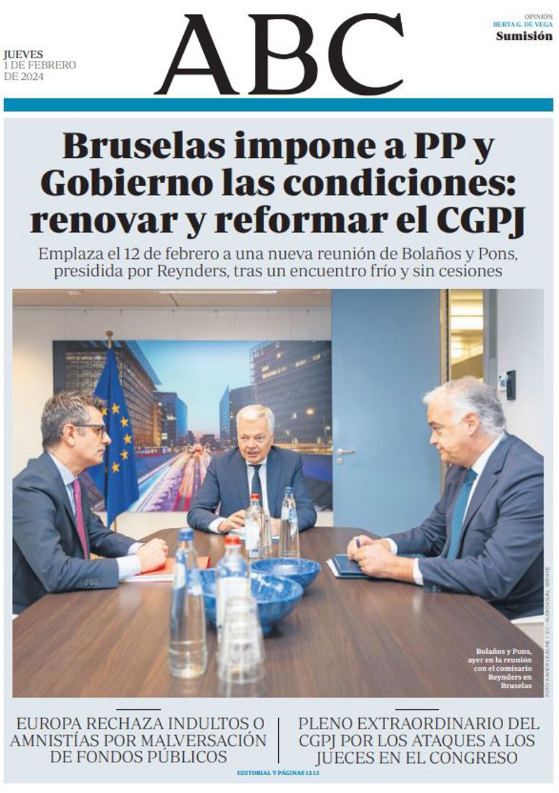 ABC: "Bruselas impone a PP y Gobierno las condiciones: renovar y reformar el CGPJ".
