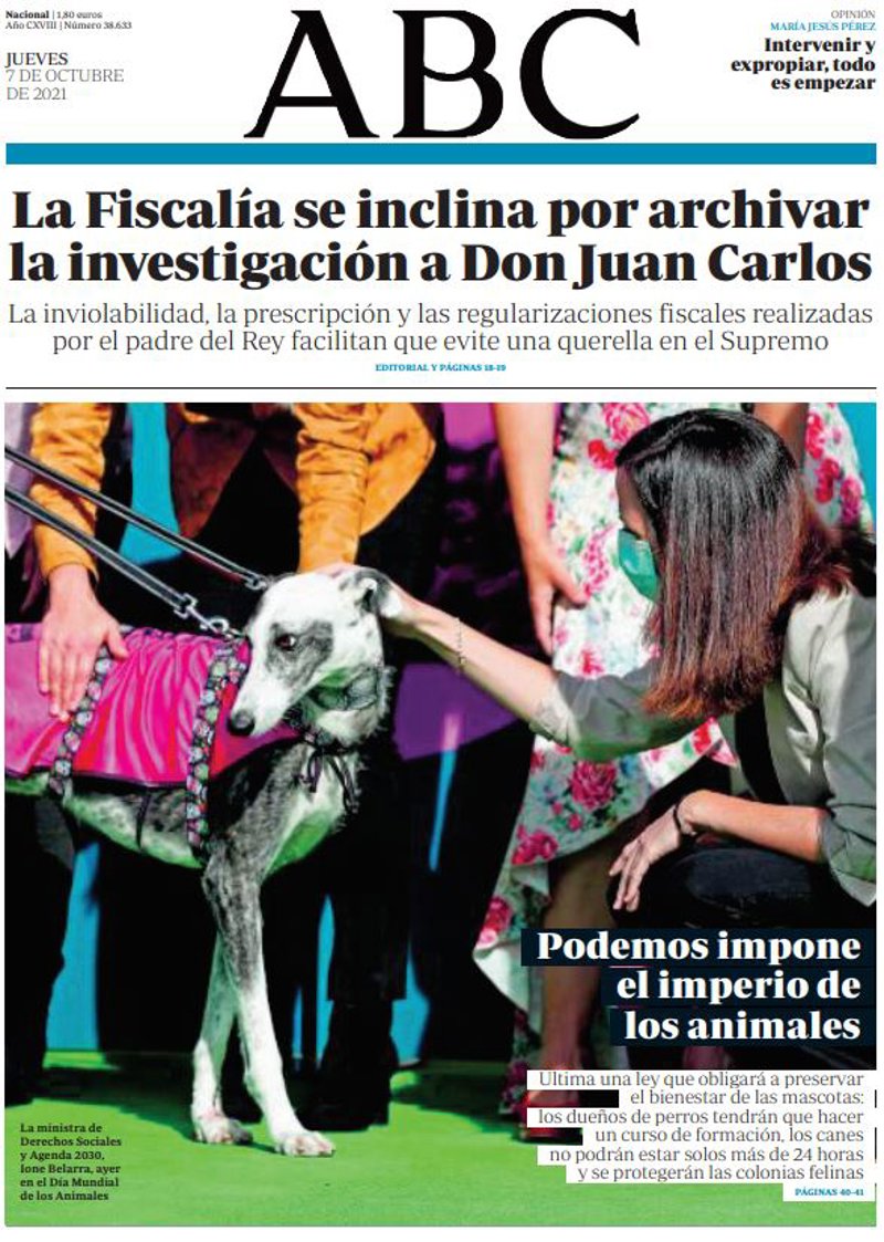 ABC: "La Fiscalía se inclina por archivar la investigación a Don Juan Carlos. La inviolabilidad, la prescripción y las regularizaciones fiscales realizadas por el padre del Rey facilitan que evite una querella en el Supremo"; "Podemos impone el imperio de
