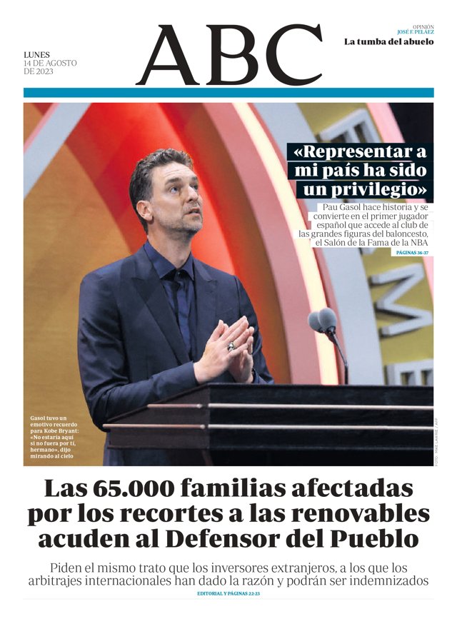 ABC: "Las 65.000 familias afectadas por los recortes a las renovables acuden al Defensor del Pueblo. Piden el mismo trato que los inversores extranjeros, a los que los arbitrajes internacionales han dado la razón y podrán ser indemnizados".