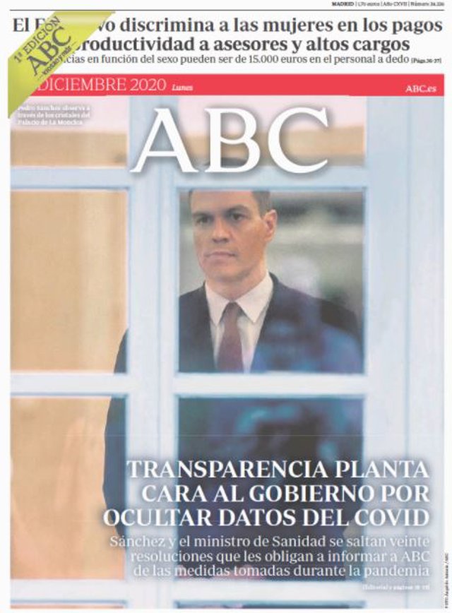 ABC: "Transparencia planta cara al Gobierno por ocultar datos del Covid".