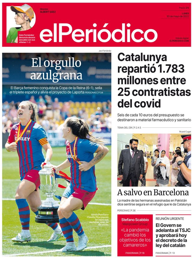 EL PERIÓDICO: "El orgullo azulgrana"; "Catlunya repartió 1.783 millones entre 25 contratistas del covid"; "A salvo en Barcelona"; "El Govern se adelanta al TSJC y aprobará hoy el decreto de la ley del catalán".