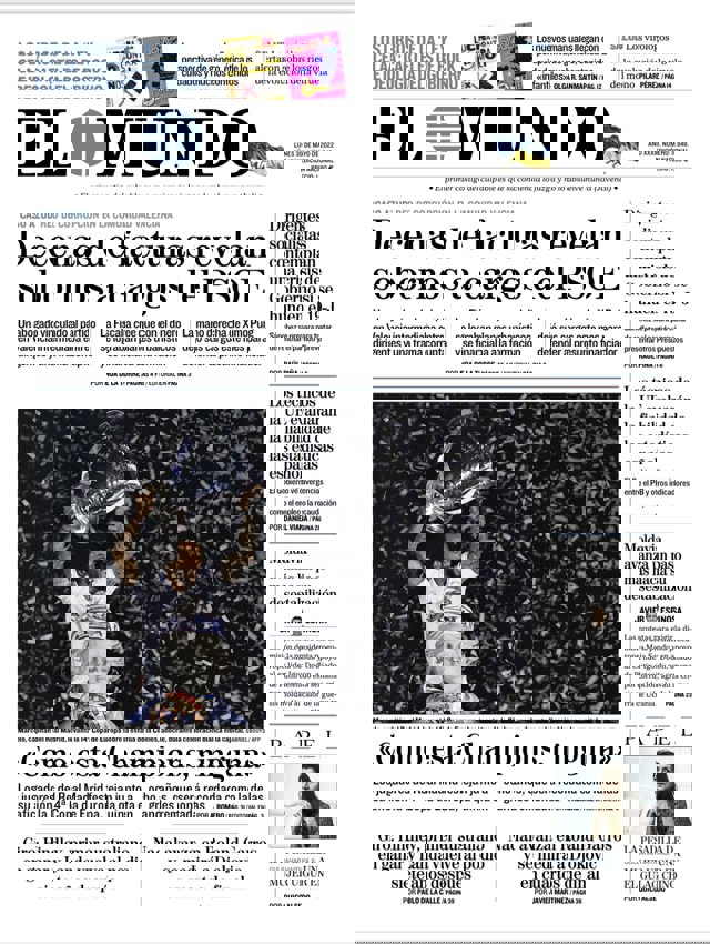 EL MUNDO: "Decenas de facturas revelan sobornos a cargos del PSOE"; "Como esta Champions, ninguna"; "Dirigentes socialistas contemplan una crisis de Gobierno si se hunden el 19-J"; "Los técnicos de la UE evaluarán la fiabilidad de las estadísticas españolas"; "Moldavia avanza un paso más hacia su desestabilización"; "Giro: Hindley, primer australiano en ganar y Landa vuelve al podio siete años después"; "Nadal avanza en Roland Garros y se medirá a Djokovic en cuartos de final".