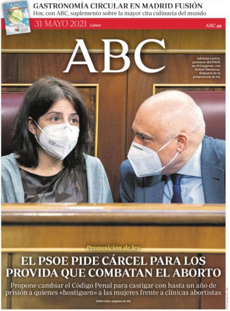 ABC: "El PSOE pide cárcel para los Provida que combatan el aborto".