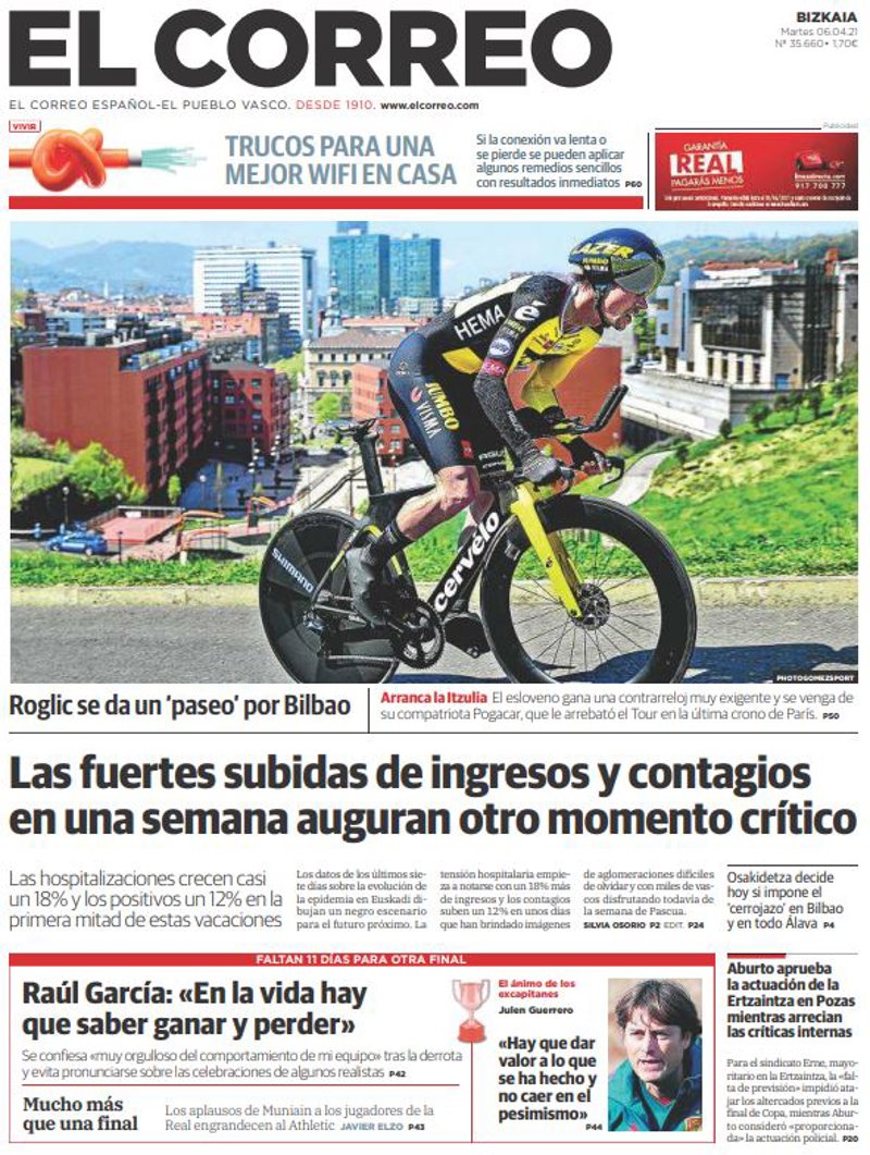EL CORREO: "Las fuertes subidas de ingresos y contagios en una semana auguran otro momento crítico"; "Raúl García: "En la vida hay