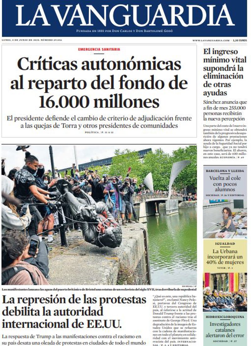 LA VANGUARDIA: "Críticas autonómicas al reparto del fondo de 16.000 millones"; "La represión de las protestas debilita la autoridad internacional de EE.UU."; "El ingreso mínimo vital supondrá la eliminación de otras ayudas".