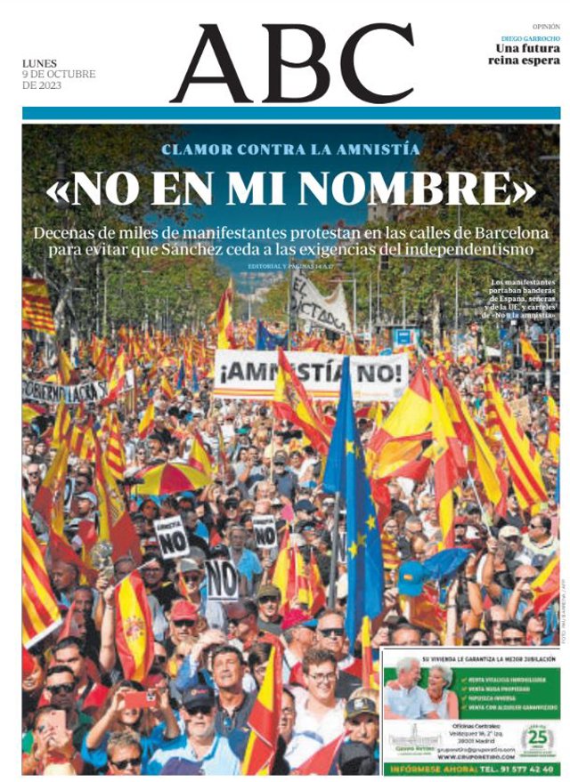 ABC: "Clamor contra la amnistía: No en mi nombre".