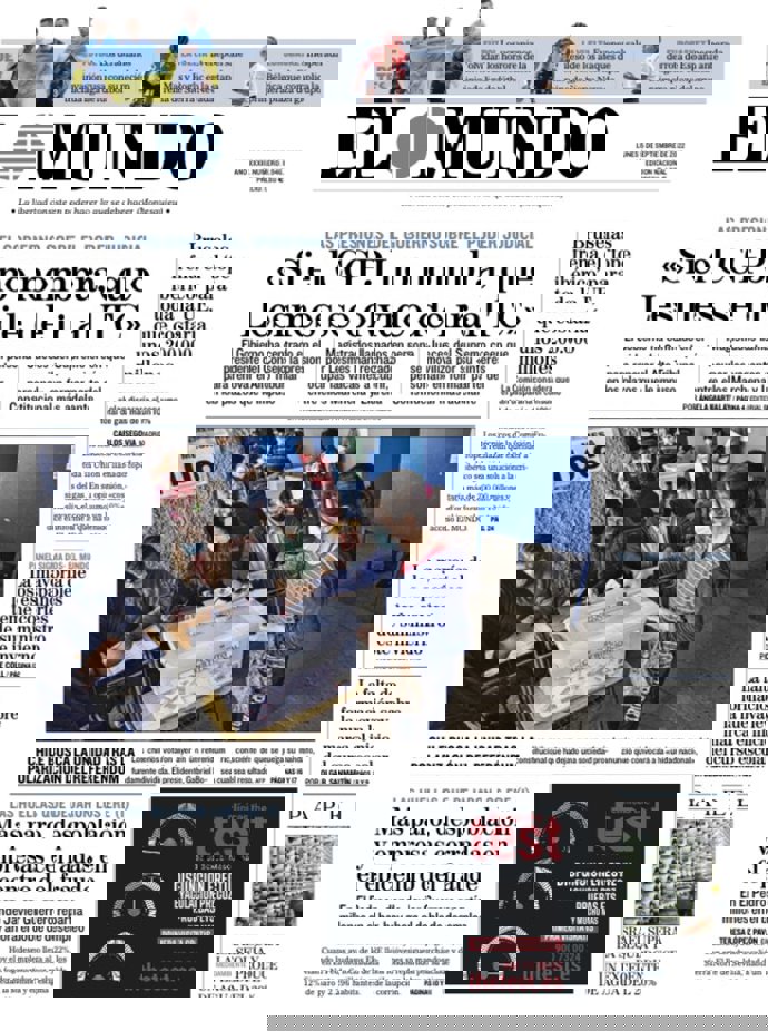 EL MUNDO: "Las presiones del Gobierno sobre el poder judicial. "Si el CGPJ no nombra, que Lesmes se olvide de ir al TC""; "Bruselas frena el 'tope ibérico' para toda la UE, que costaría unos 200.000 millones"; "Chile busca la unidad tras la polarización del referéndum"; "Las huellas que dejaron los ERE (I). Más paro, despoblación y empresas cerradas en el epicentro del fraude".