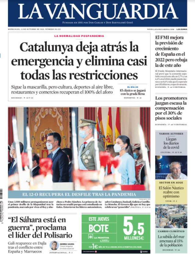 todas las restricciones"; "El FMI mejora la previsión de crecimiento de España en el 2022 pero rebaja la de este año"; "Los promotores juzgan escasa la compensación por el 30% de pisos sociales"; ""El Sáhara está en guerra", proclama el líder del Polisario".