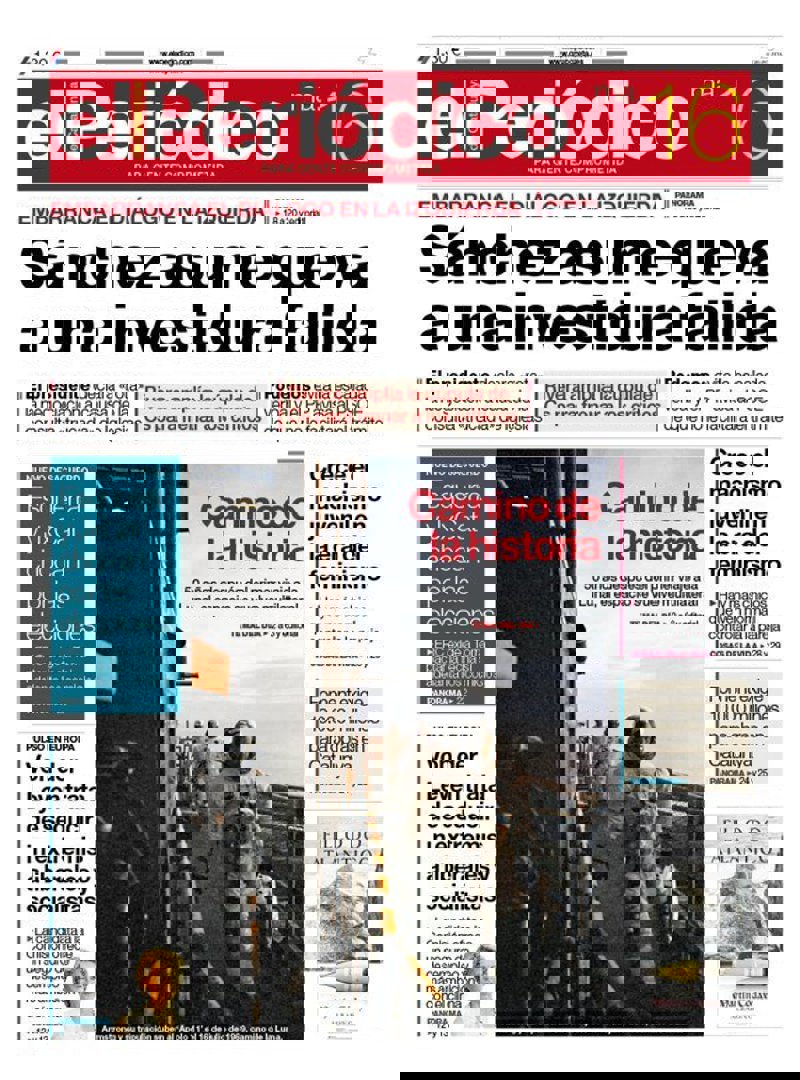 EL CORREO: "Sánchez estalla contra Iglesias y da ínfimas posibilidades a salir investido este mes"; "El aerotaxi vasco y vuela. Tecnalia presenta el primer prototipo desarrollado en España para trayectos urbanos y sin piloto"; ""Estaban perdidas y agotadas". Rescatadas tres espeleólogas en Cantabria"; "La buena recaudación fiscal en Bizkaia salva el pinchazo de Gipuzkoa y Álava".