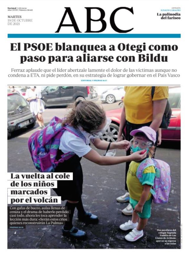 ABC: "El PSOE blanquea a Otegi como paso para aliarse con Bildu"; "La vuelta al cole de los niños marcados por el volcán".
