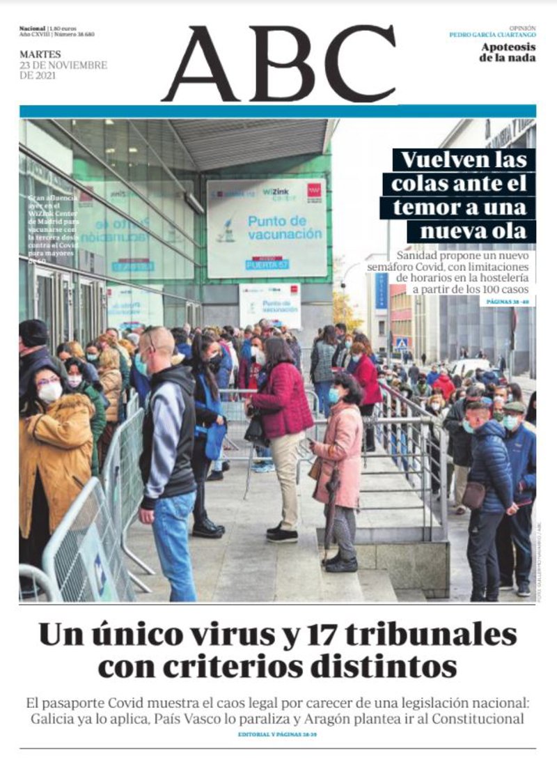 ABC: "Vuelven las colas ante el temor a una nueva ola"; "Un único virus y 17 tribunales con criterios distintos".