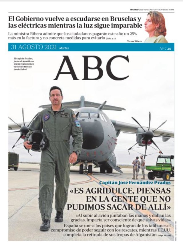 ABC: "El Gobierno vuelve a escudarse en Bruselas y las eléctricas mientras la luz sigue imparable"; "Capitán José Fernández Prados: 'Es agridulce, piensas en la gente que no pudimos sacar de allí'".