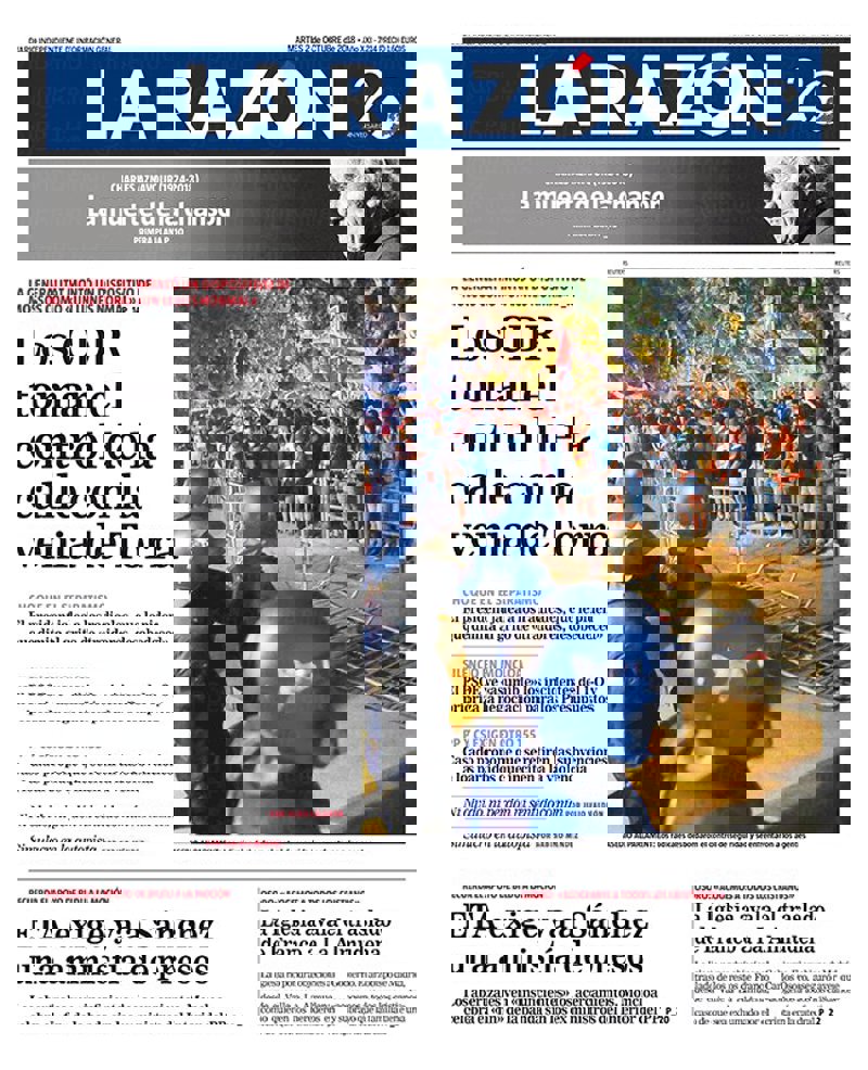 LA RAZÓN: "Los CDR toman el control de la calle con la venia de Torra"; "El president jalea a los radicales, que le piden que dimita al grito de "traidores, desobedeced"; "ETA exige ya a Sánchez una amnistía de presos"; "La Iglesia avala el traslado de Franco a La Almudena".
