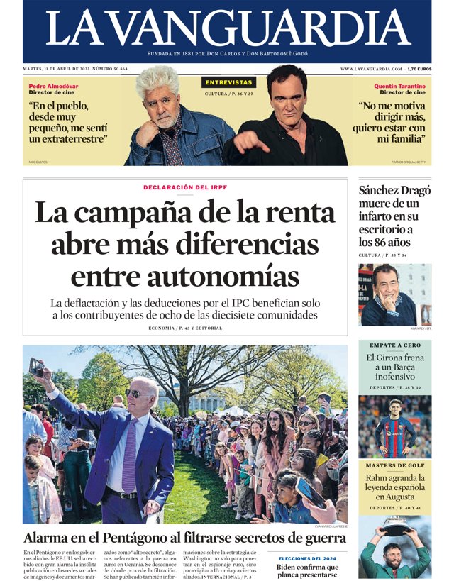 en seguros e hipotecas"; "Aragonès activa el proceso para una propuesta catalana de referéndum"; "¿Por qué los pobres votan a la ultraderecha?"; "El FMI eleva a un 1,5% la previsión de crecimiento de España"; "Estado de emergencia migratorio en Italia".