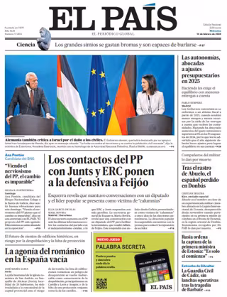 EL PAÍS: "Los contactos del PP con Junts y ERC ponen a la defensiva a Feijóo"; "Ana Pontón, candidata del BNG: "Viendo el nerviosismo del PP, el cambio es imparable""; "La agonía del románico en la España vacía"; "Las autonomías, abocadas a ajustes presupuestarios en 2025"; "Tras el rastro de Abuelo, el español perdido en Donbás"; "Rusia ordena la captura de la primera ministra de Estonia: "Es solo el comienzo""; "La Guardia Civil de Cádiz, sin lanchas operativas tras la tragedia de Barbate".