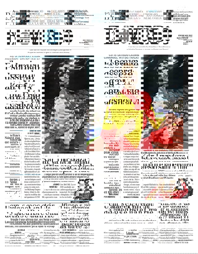 EL MUNDO: "El soberanismo desesperado agita el 17-A contra el Estado acusando al CNI"; "Katir y la marcha lanzan al atletismo español en Múnich"; "Ucrania se ceba con el talón de Aquiles de Rusia en Crimea"; "Es fiasco de los avales por el Covid: impagos de 267 al ICO hasta octubre de 2021".