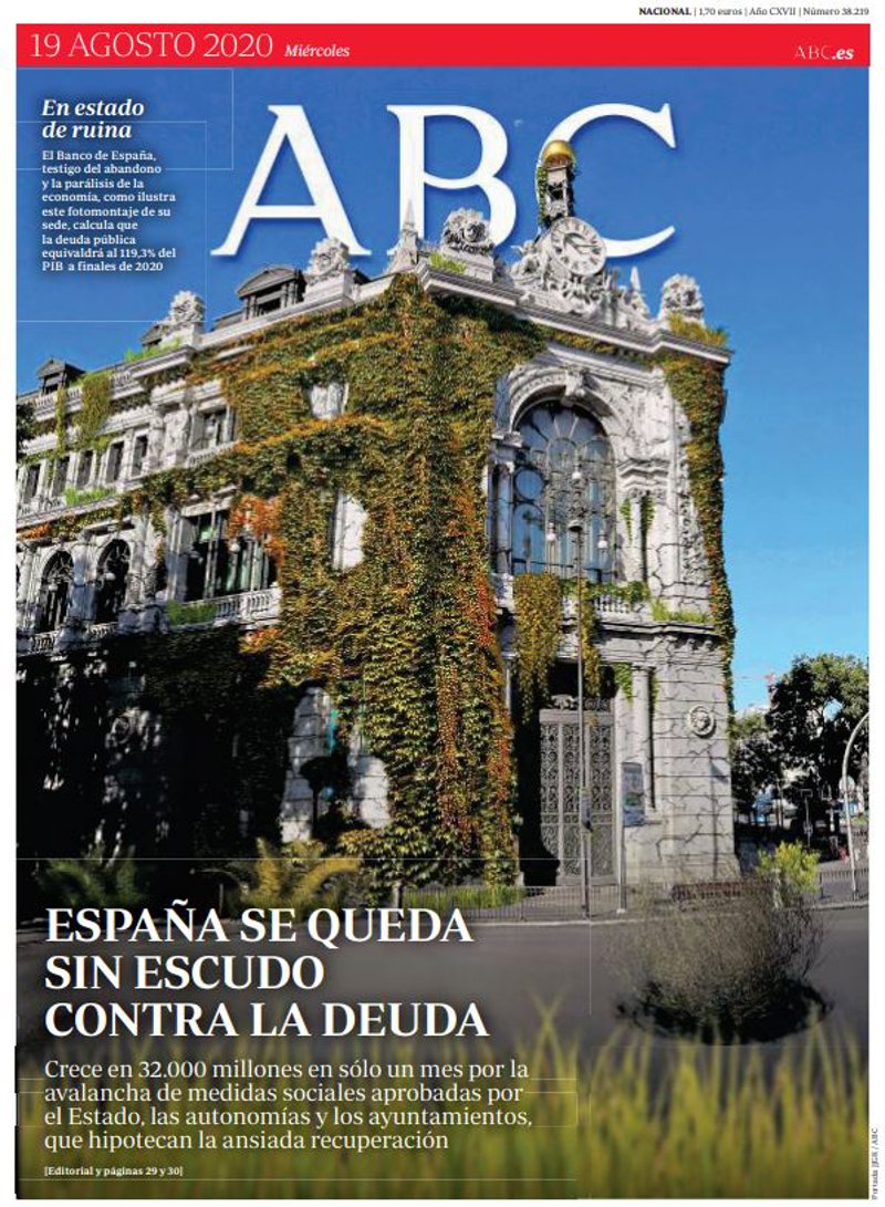 ABC: "España se queda sin escudo contra la deuda. Crece en 32.000 millones en sólo un mes por la avalancha de medidas sociales aprobadas por el Estado, las autonomías y los ayuntamientos, que hipotecan la ansiada recuperación".