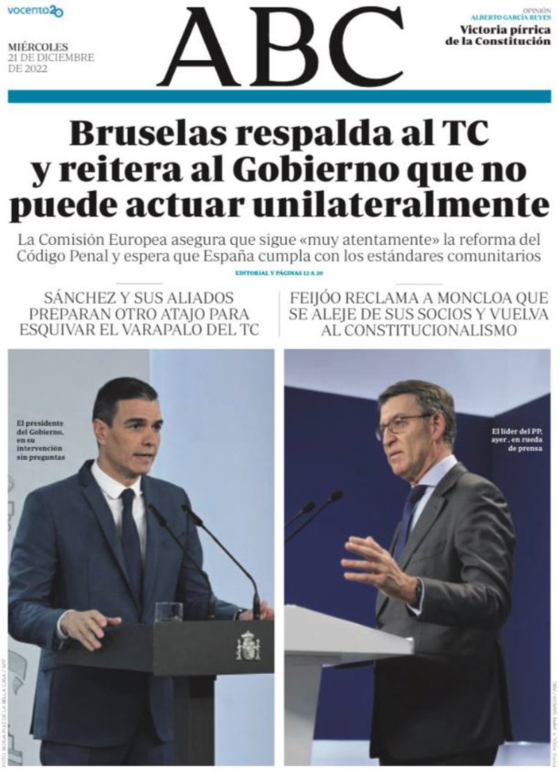 ABC: "Bruselas respalda al TC y reitera al Gobierno que no puede actuar unilateralmente".