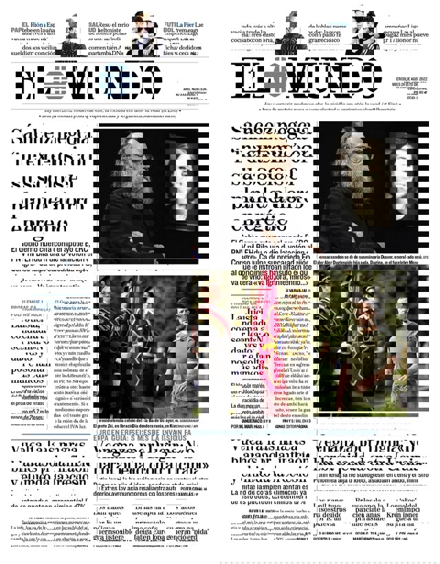 EL MUNDO: "Sánchez negocia in extremis con sus socios el plan de ahorro energético"; "La Justicia, condenada a ser lenta: No da votos y por eso faltan más medios"; "Vuelta a las marcas blancas por la inflación y el miedo a la recesión"; "Venganza por Dugina: No habrá piedad contra Ucrania".