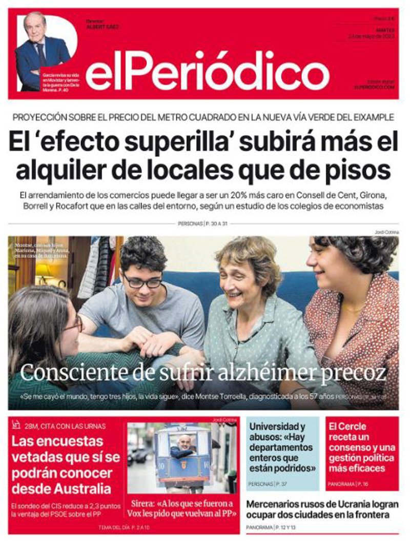 EL PERIÓDICO: "El 'efecto superilla' subirá más el alquiler de locales que de pisos"; "Consciente de sufrir alzhéimer precoz"; "Las encuestas vetadas que sí se podrán conocer desde Australia"; "Universidad y abusos: "Hay departamentos enteros que están podridos""; "El Cercle receta un consenso y una gestión política más eficaces"; "Mercenarios rusos de Ucrania logran ocupar dos ciudades en la frontera".