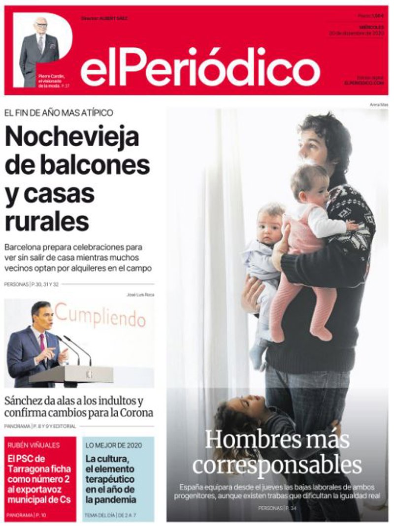 EL PERIÓDICO: "Nochevieja de balcones y casas rurales"; "Sánchez da alas a los indultos y confirma cambios para la Corona"; "El PSC de Tarragona ficha como número 2 al exportavoz municipal de Cs"; "La cultura, el elemento terapéutico en el año de la pandemia"; "Hombres más corresponsables".