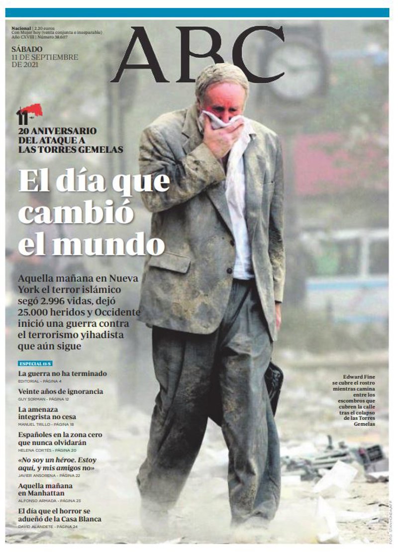 ABC: "El día que cambió el mundo. Aquella mañana en Nueva York el terror islámico segó 2.996 vidas, dejó 25.000 heridos y Occidente inició una guerra contra el terrorismo yihadista que aún sigue".