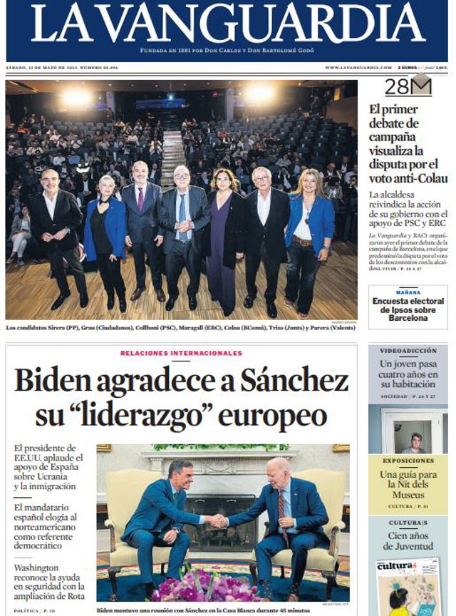 LA VANGUARDIA: "Biden agradece a Sánchez su "liderazgo" europeo"; "El primer debate de campaña visualiza la disputa por el voto anti-Colau".