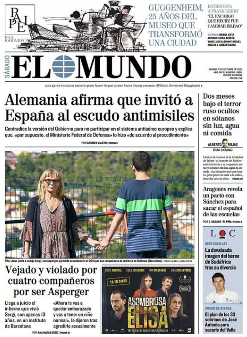 EL MUNDO: "Alemania afirma que invitó a España al escudo antimisiles"; "Vejado y violado por cuatro compañeros por ser Asperger"; "Dos meses bajo el terror ruso ocultos en sótanos sin luz, agua ni comida"; "Aragonès revela un pacto con Sánchez para sacar el español de las escuelas".