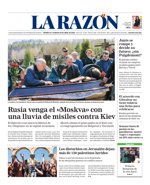 LA RAZÓN: "Rusia venga el Moskvá con una lluvia de misiles contra Kiev"; "Junts se rompe y decide su futuro ¿sin Puigdemont?; "El acuerdo con Gibraltar no tiene todavía una fecha para celebrarse"; "Semana Santa de pasión en las gasolineras: menos viajes y repostajes un 26% más caros"; "Los disturbios en Jerusalén dejan más de 150 palestinos heridos".