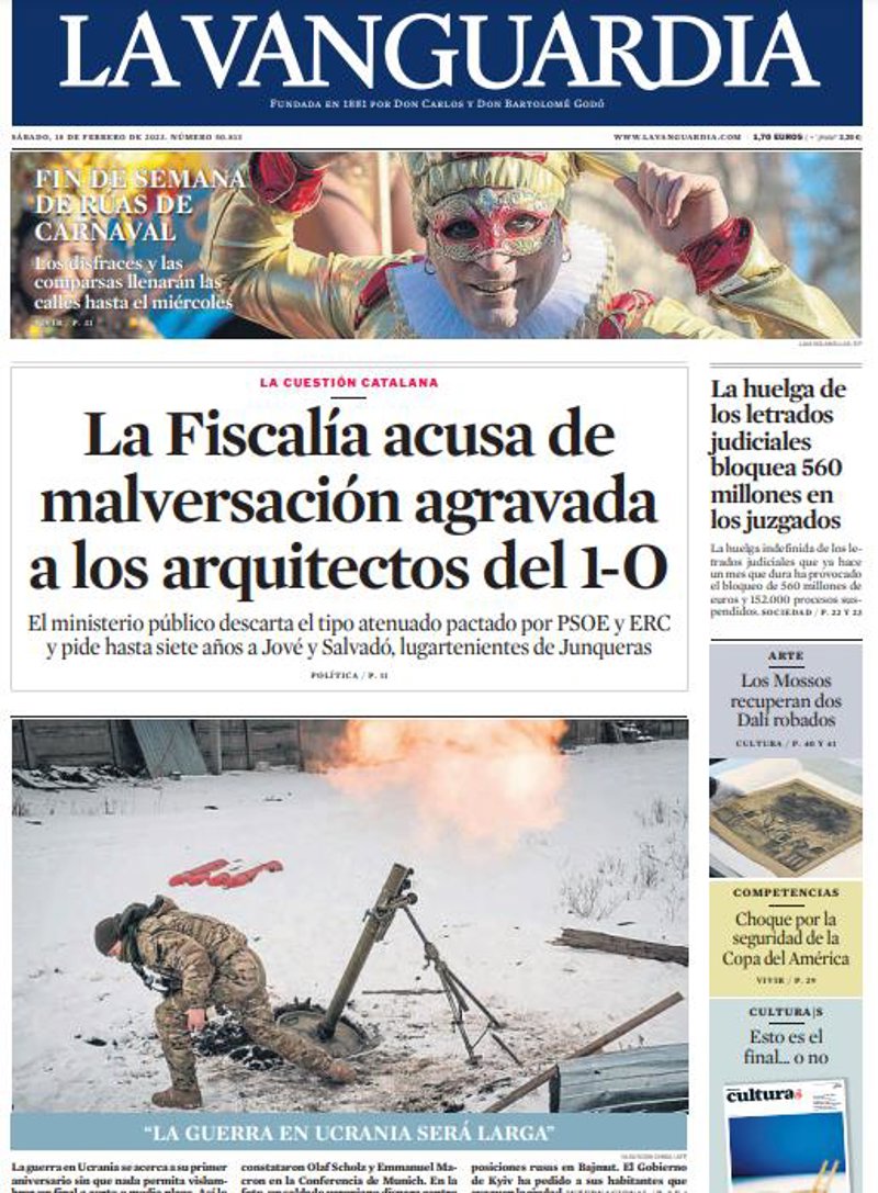 LA VANGUARDIA: "La Fiscalía acusa de malversación agravada a los arquitectos del 1-O"; "La huelga de los letrados judiciales bloquea 560 millones en los juzgados".