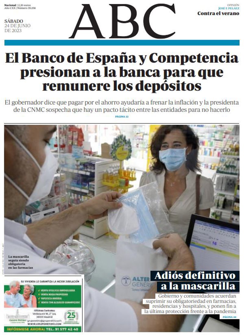 ABC: "El Banco de España y Competencia presionan a la banca para que remunere los depósitos"; "Adiós definitivo a la mascarilla".