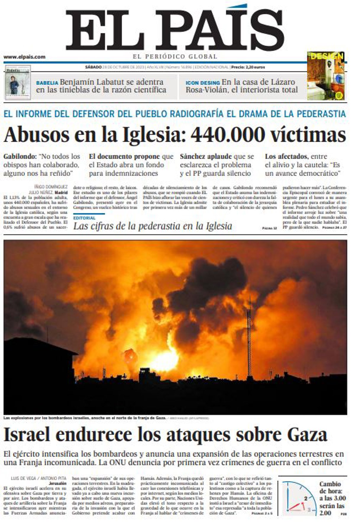 EL PAÍS: "Abusos en la Iglesia: 440.000 víctimas"; "Israel endurece los ataques sobre Gaza".