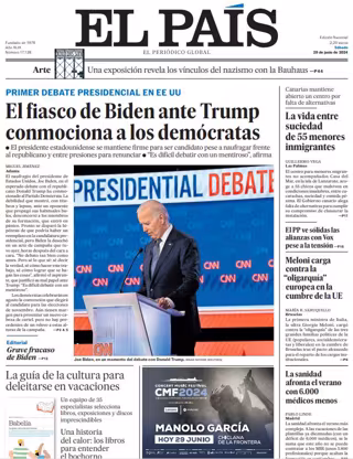 EL PAÍS: "El fiasco de Biden ante Trump conmociona a los demócratas"; "La vida entre suciedad de 55 menores inmigrantes"; "Meloni carga contra la "oligarquía" europea en la cumbre de la UE"; "La sanidad afronta el verano con 6.000 médicos menos".