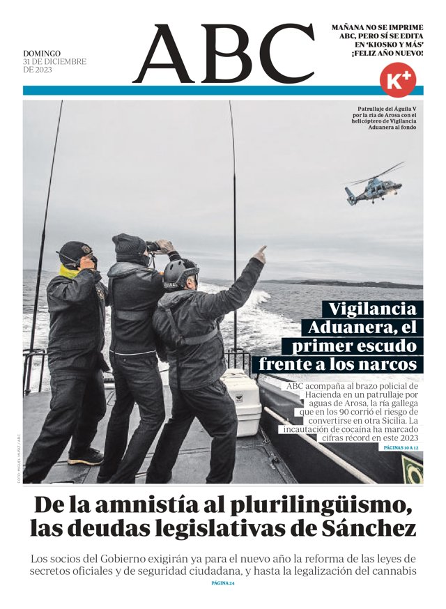 ABC: "Vigilancia Aduanera, el primer escudo frente a los narcos"; "De la amnistía al plurilingüismo, las deudas legislativas de Sánchez".