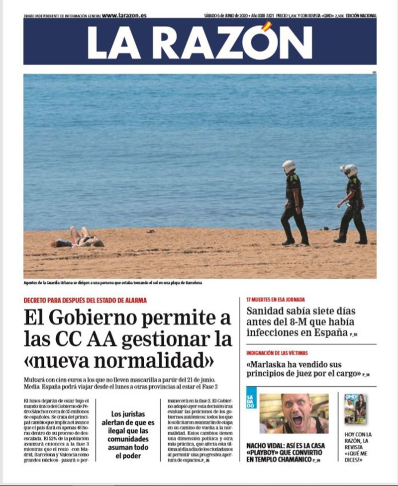 LA RAZÓN: "El Gobierno permite a las CC AA gestionar la "nueva normalidad". Los juristas alertan de que es ilegal que las comunidades asuman todo el poder"; "Sanidad sabía siete días antes del 8-M que había infecciones en España"; "Indignación de las víctimas. "Marlaska ha vendido sus principios de juez por el cargo"".