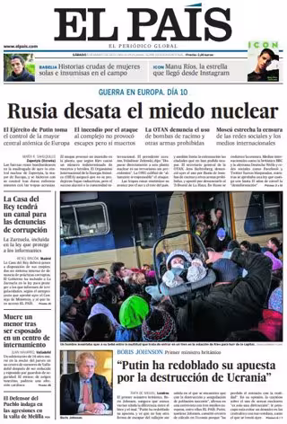 EL PAÍS: "Rusia desata el miedo nuclear"; "La Casa del Rey tendrá un canal para las denuncias de corrupción"; "Muere un menor tras ser esposado en un centro de internamiento"; "El Defensor del Pueblo indaga en las agresiones en la valla de Melilla"; "Boris Johnson, primer ministro británico: "Putin ha redoblado su apuesta por la destrucción de Ucrania"".