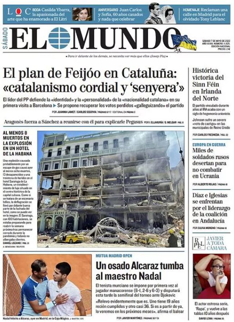 EL MUNDO: "El plan de Feijóo en Cataluña: "catalanismo cordial y 'senyera'""; "Un osado Alcaraz tumba al maestro Nadal"; "Histórica victoria del Sinn Féin en Irlanda del Norte"; "Miles de soldados rusos desertan para no combatir en Ucrania"; "Díaz e Iglesias se enfrentan por el liderazgo de la coalición en Andalucía".