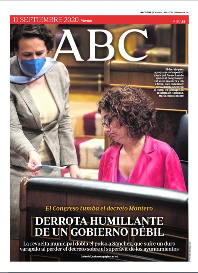 ABC: "Derrota humillante de un Gobierno débil. La revuelta municipal dobla el pulso a Sánchez, que sufre un duro varapalo al perder el decreto sobre el superávit de los ayuntamientos".