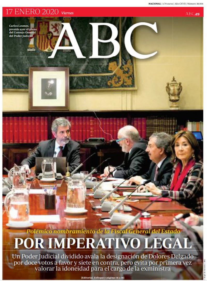 ABC: "Por imperativo legal. Un Poder Judicial dividido avala la designación de Dolores Delgado por doce votos a favor y siete en contra, pero evita por primera vez valorar la idoneidad para el cargo de la exministra".