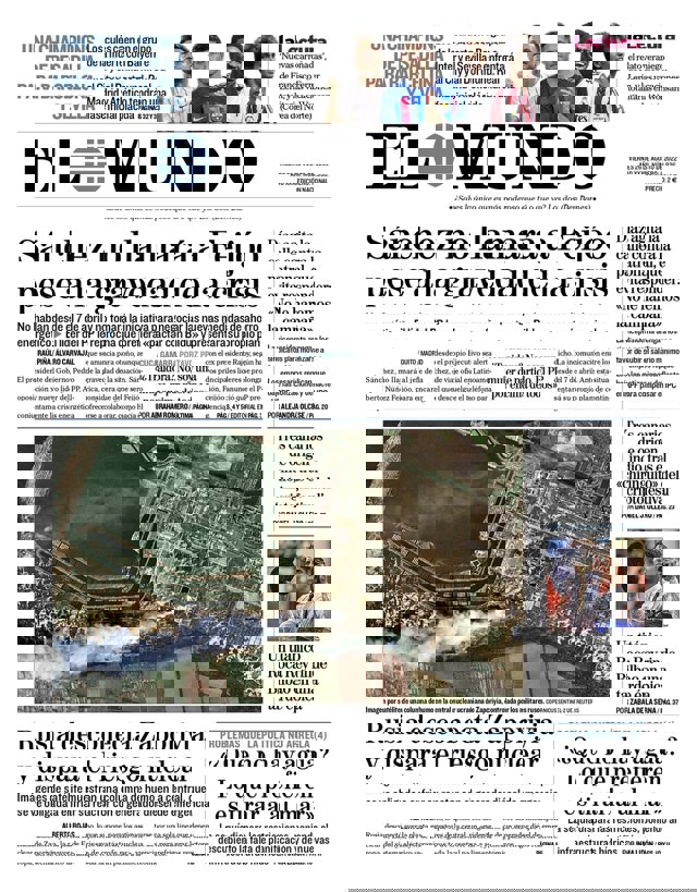 EL MUNDO: "Sánchez no llamará a Feijóo pese a la gravedad de la crisis"; "Rusia desconecta Zaporiyia y dispara el riesgo nuclear"; "Díaz agita la calle contra la patronal, que evita responder: no le haremos la campaña"; "Tres canarios de origen indio, tras el chiringuito del criptofestival"; "Un titánico Roca Rey rinde Bilbao en una tarde épica"; "¿Que no hay agua? Lo que prefieren es tirarla al mar".