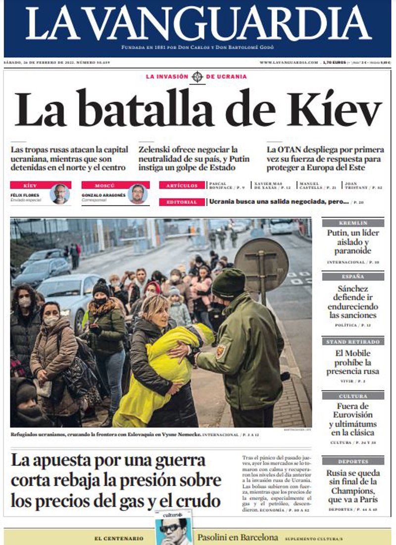 LA VANGUARDIA: "La batalla de Kíev"; "La apuesta por una guerra corta rebaja la presión sobre los precios del gas y el crudo".