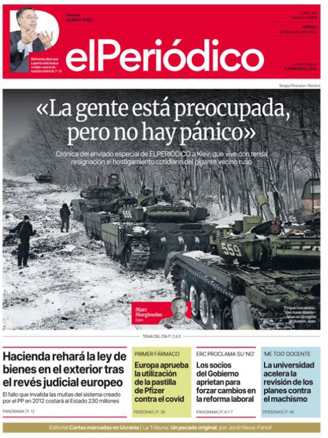 EL PERIÓDICO: "La gente está preocupada, pero no hay pánico"; "Hacienda rehará la ley de bienes en el exterior tras el revés judicial europeo"; "Europa aprueba la utilización de la pastilla de Pfizer contra el covid"; "Los socios del Gobierno aprietan para forzar cambios en la reforma laboral"; "La universidad acelerar la revisión de los planes contra el machismo".
