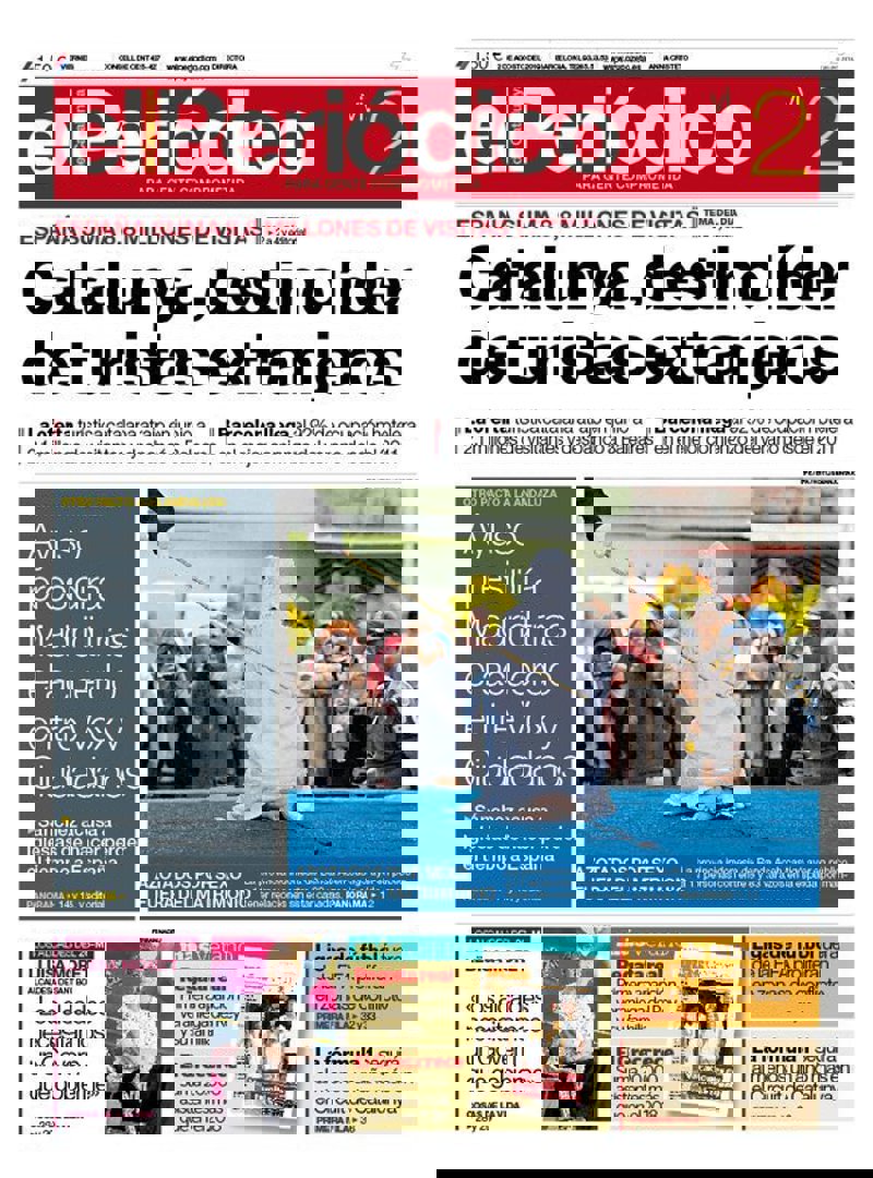 EL PERIÓDICO: "Catalunya, destino líder de turistas extranjeros"; "Ayuso presidirá Madrid tras el acuerdo entre Vox y Ciudadanos"; "Azotados por sexo fuera del matrimonio"; "Lluisa Moret, alcaldesa de Sant Boi: "Los alcaldes necesitamos un Govern que gobierne".