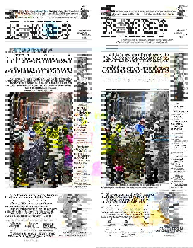 EL MUNDO: "La UE abre sus fronteras sin condiciones a los ucranianos"; "La flota rusa zarpa desde Crimena a Odesa: Quieren destruirla"; "La Reina se solidariza con Ucrania y viste su blusa tradicional".
