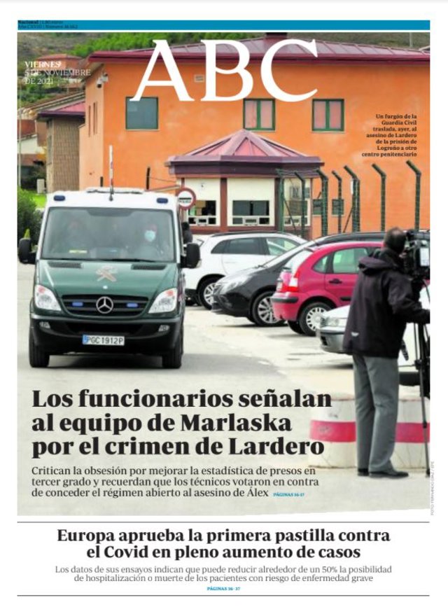 LA VANGUARDIA: "Los funcionarios señalan al equipo de Marlaska por el crimen de Lardero"; "Europa aprueba la primera pastilla contra el Covid en pleno aumento de casos"; "'Le ruego que frenen estas salvajadas, ya'"; "Portugal celebrará elecciones anticipadas el 30 de enero"; "El obispo Novell halla trabajo en el sector porcino".