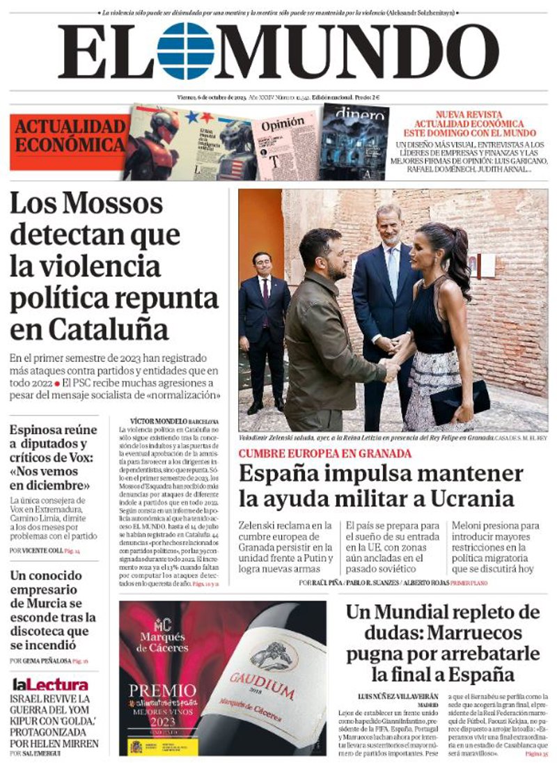 EL MUNDO: "Los Mossos detectan que la violencia política repunta en Cataluña"; "España impulsa mantener la ayuda militar a Ucrania";