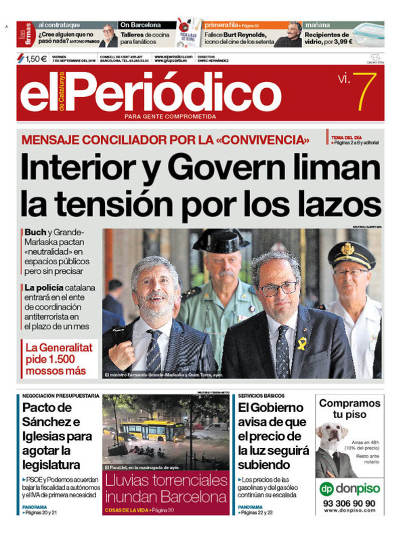 el control de la "neutralidad" en la calle a los Mossos"; "El Gobierno se resigna: la luz subirá un 15% este año".