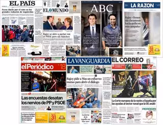Las primeras ediciones de los principales periódicos llegados a nuestra redacción incluyen, entre otras, las siguientes noticias en sus portadas: