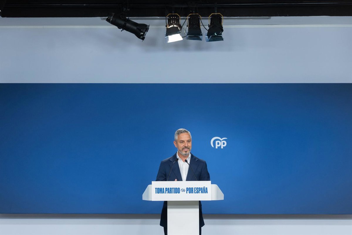 El vicesecretario de Hacienda, Vivienda e Infraestructuras, Juan Bravo, durante una rueda de prensa para tratar asuntos de actualidad, en la sede del PP, a 4 de agosto de 2025, en Madrid (España). - Eduardo Parra - Europa Press