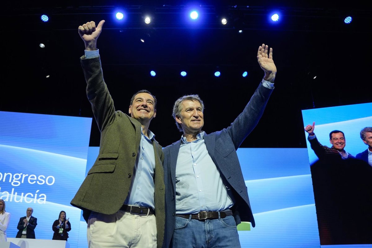 Archivo - El presidente del PP, Albero Nuñez Feijoo, junto a el presidente de la Junta de Andalucía, Juanma Moreno, durante el congreso del PP-A. A 9 de noviembre de 2025. - Joaquin Corchero - Europa Press - Archivo